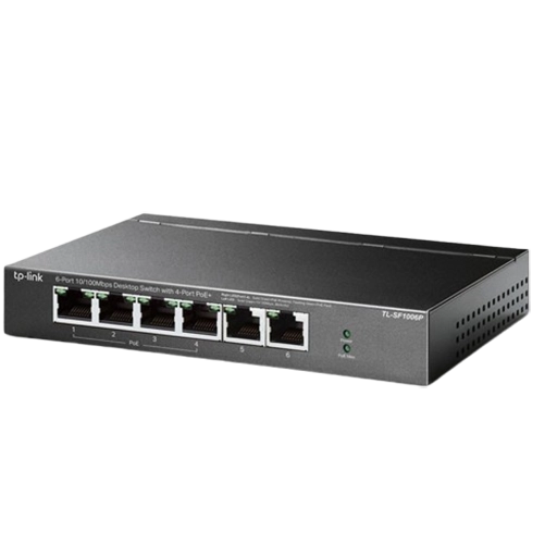 سوییچ SF1006P تی پی لینک با 4 پورت PoE و پشتیبانی از VLAN، گزینهای ایدهآل برای دوربینهای شبکه و کاربردهای نظارتی است.
