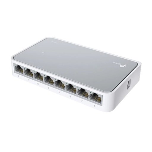 سوییچ TL-SF1008D تی پی لینک با 8 پورت، مناسب شبکههای خانگی و اداری با نصب آسان و مصرف انرژی کم است.
